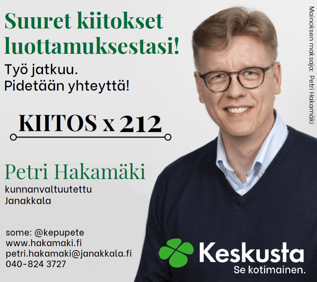 Raikas, reipas ja rehti jatkokaudelle Janakkalan kunnanvaltuustoon!